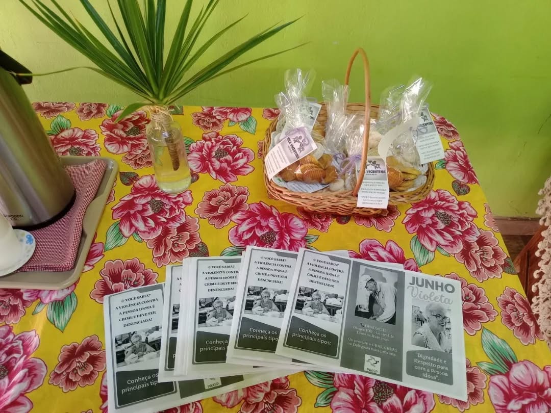 Nesta manhã foi realizado um encontro intergeracional com às crianças da ONG JOCUM Vila. Neste encontro o Serviço Social abordou questões do junho violeta: um mês para conscientização sobre violência contra pessoas idosas. Após a conscientização das temática, às crianças apresentaram duas músicas sendo uma de composição das mesmas, tendo finalizado com um bingo fotográfico onde às crianças de presente entregaram um desenho feito por elas e eles mesmos. E nós da Vila Vicentina entregamos uma lembrança cheio de amor juntamente com o flyer explicativo do junho violeta pra levaram aos seus pais divulgando a importância da conscientização!